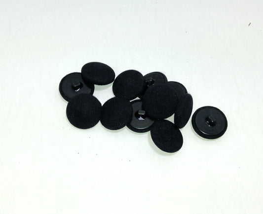 20 Line, Fabric Covered Buttons in Black Satin with Hopper Back (12 PC.) 1/2" or 13mm