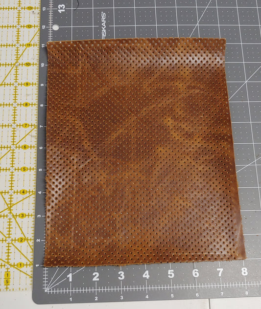 LARGE Perforated Cowhide Genuine Leather Piece 4P14 - Arizona Cognac - leather scraps; eco friendly; scrapbooking; crafting; leather working