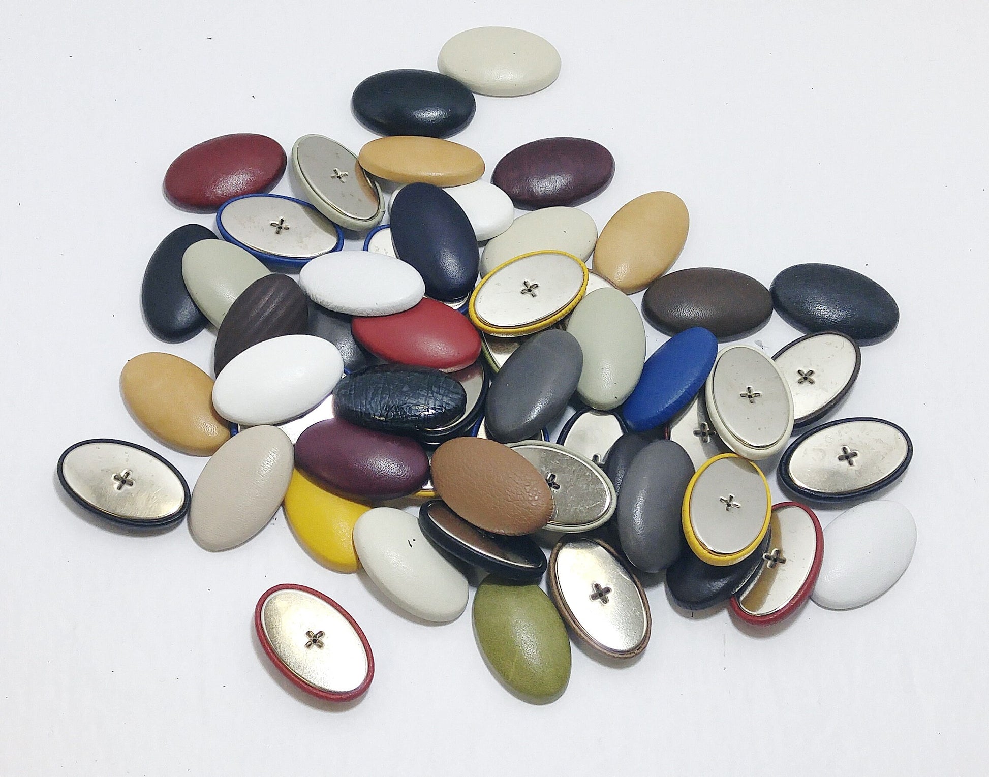 10 Cowhide Leather Covered Buttons O60 Oval Shaped Pivot Back , Random Color Assortment; crafters; scrapbooking; arts and crafts; HALF BALL